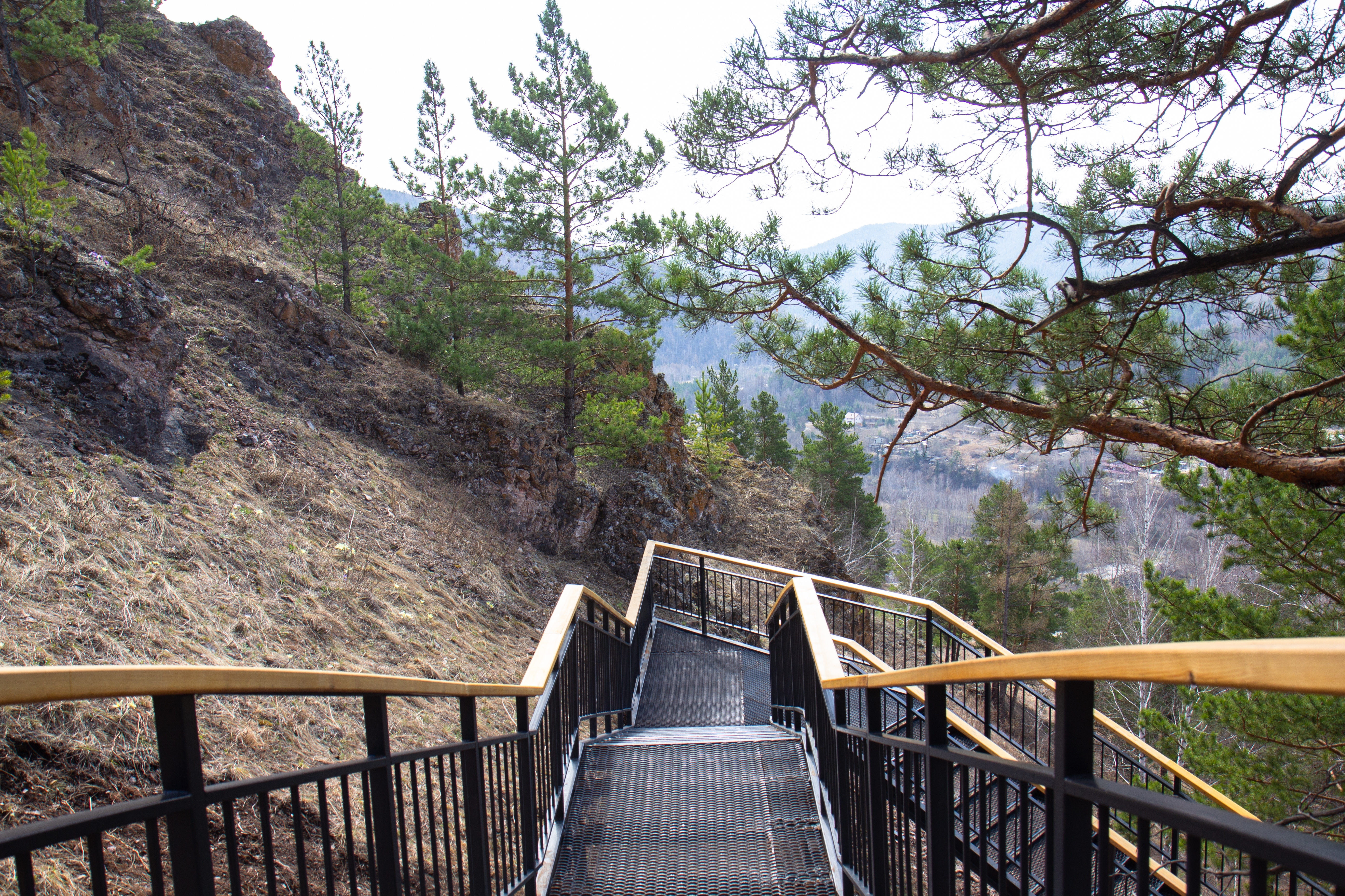 on the longest staircase in Russia, leading to the Torgashinsky ridge