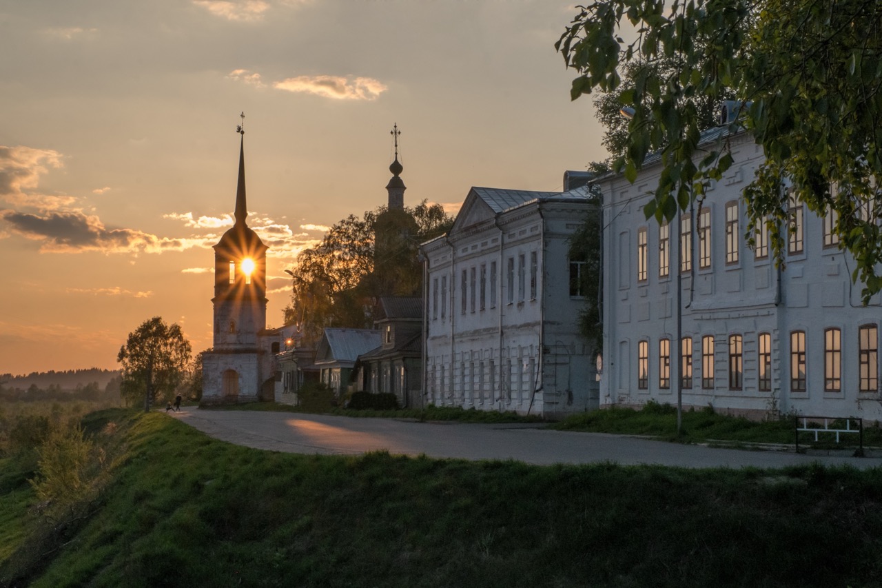 Be sure to head to the embankment in the evening - the sunsets in Ustyug are simply magnificent. The sky turns deep pink or yellow, and the snow appears bluish. Against this backdrop, the white-stone Sobornoe Dvorishche looks especially impressive.