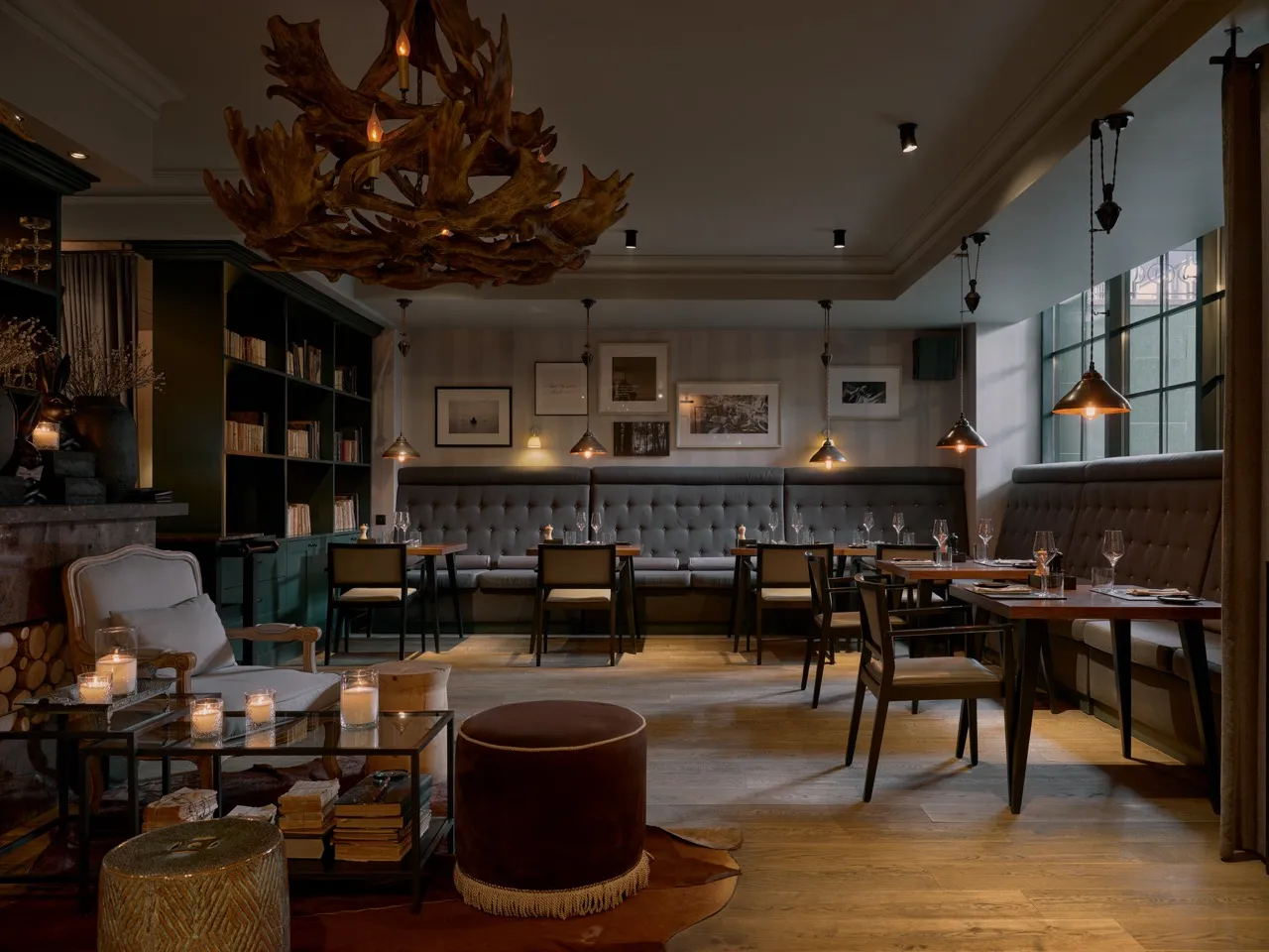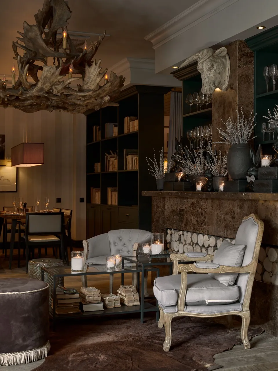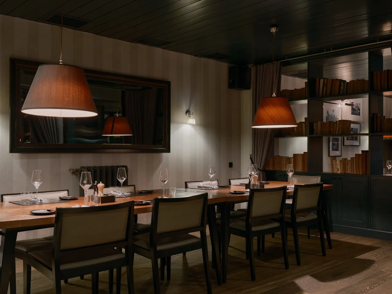 A premium-tier restaurant. The menu centers on premium meats and signature wines from both Old and New World regions. The venue is renowned for its shareable signature dishes: herb-crusted ribeye roast with seasonal vegetables, braised veal shank falling off the bone, king crab claws with drawn butter, apple-stuffed roasted duck with port reduction, showstopping Wellington featuring Siberian nelma fish and scallop mousse.