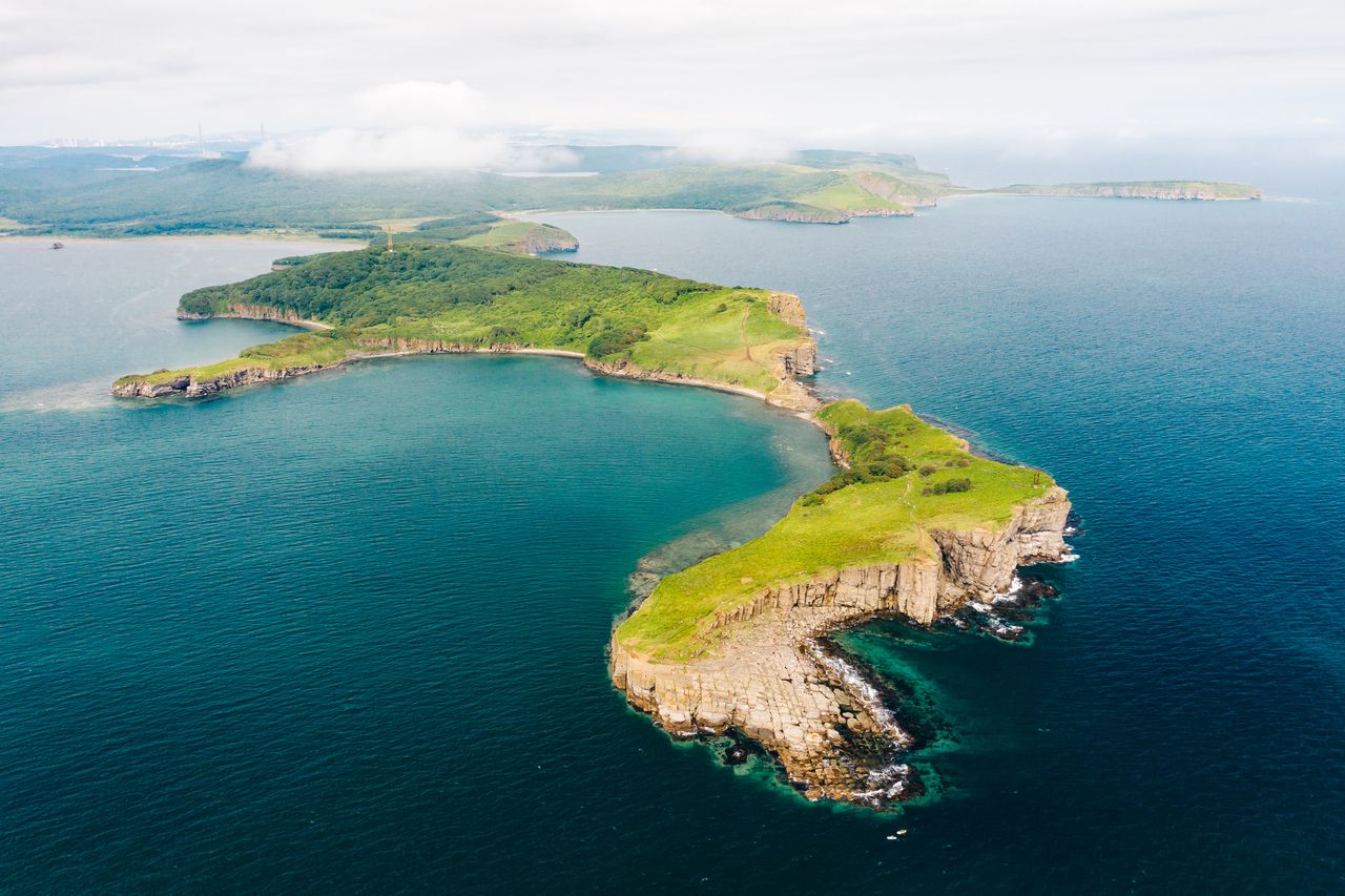 Cape Tobizina is a picturesque spot with cliffs rising from the deep blue sea. It’s the perfect place to watch the sunrise at the edge of the world. No wonder it’s one of the most popular locations on Russky Island. The cape is linked to the island of the same name by a narrow isthmus. To the east, the peninsula is surrounded by the waters of Karpinsky Bay, while to the west, it is surrounded by Ostrovnaya Bay and Novy Dzhigit Bay.