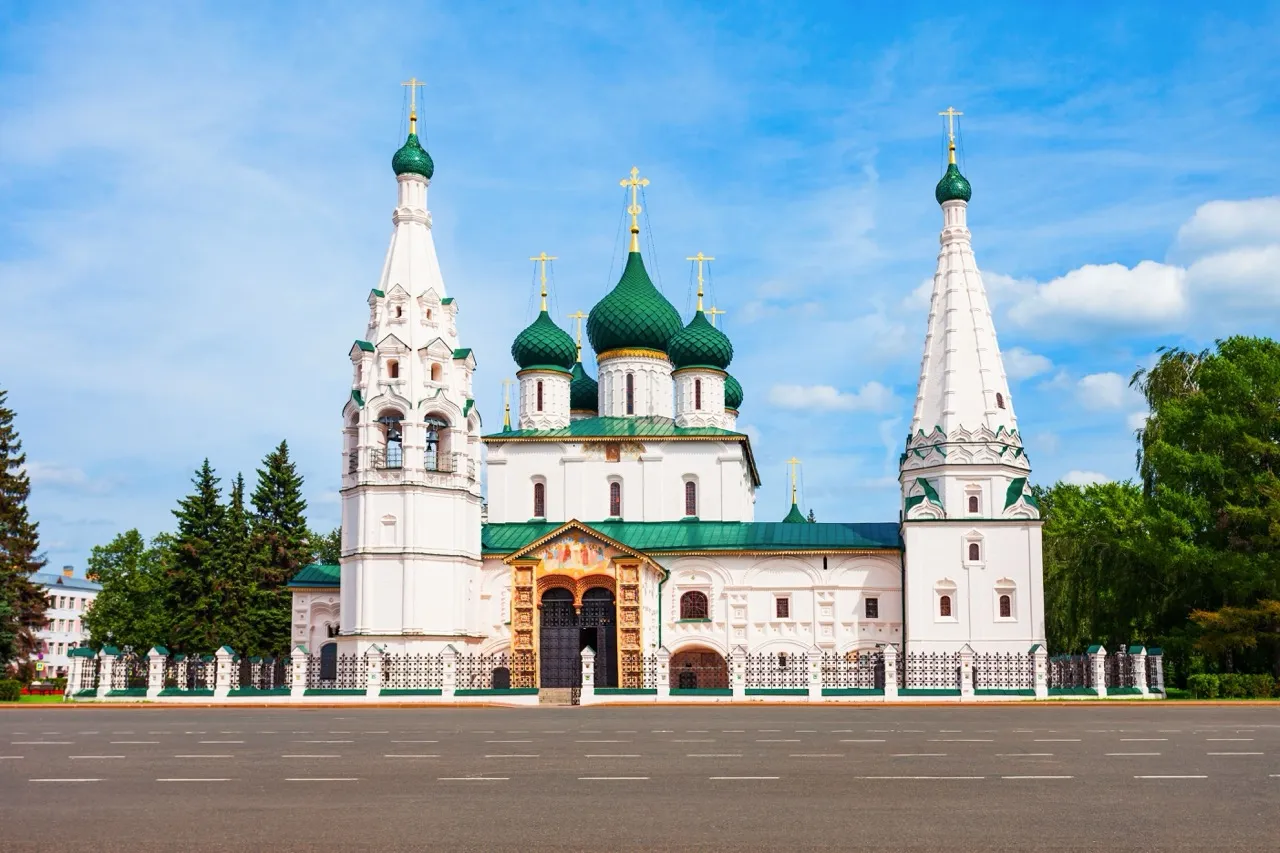 The Church of John Chrysostom is considered the best in Yaroslavl in terms of decorative design. Its ornate appearance is enhanced by various ornaments, flowers, and birds.