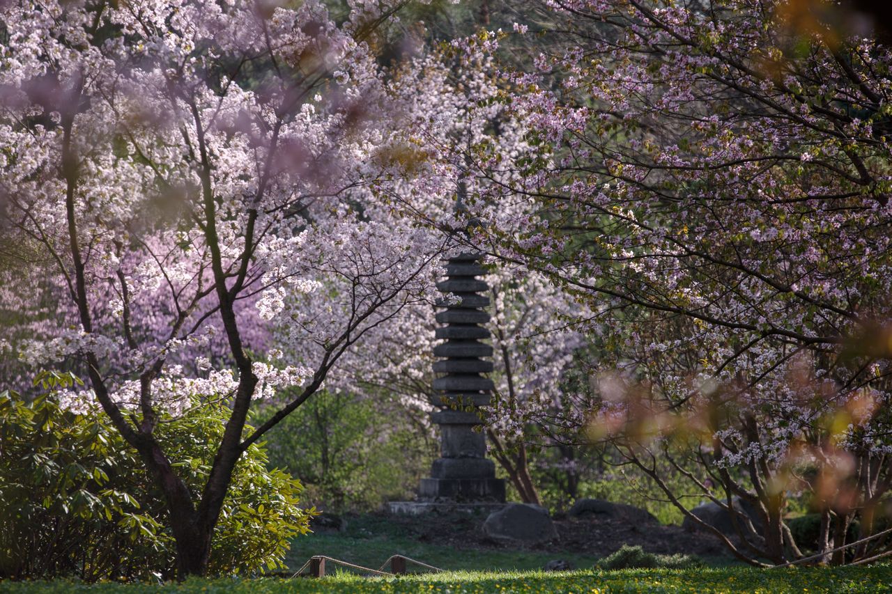An oriental-style landscape composition. In spring, the garden enchants with delicate cherry blossoms, while summer delights visitors with abundant irises, peonies, lavender, and spirea. The garden features numerous cozy and photogenic spots: from small ponds and waterfalls to multi-tiered pagodas and pavilions built in traditional Japanese architecture. Another highlight of this oriental landscape is the magnificent coniferous plants.