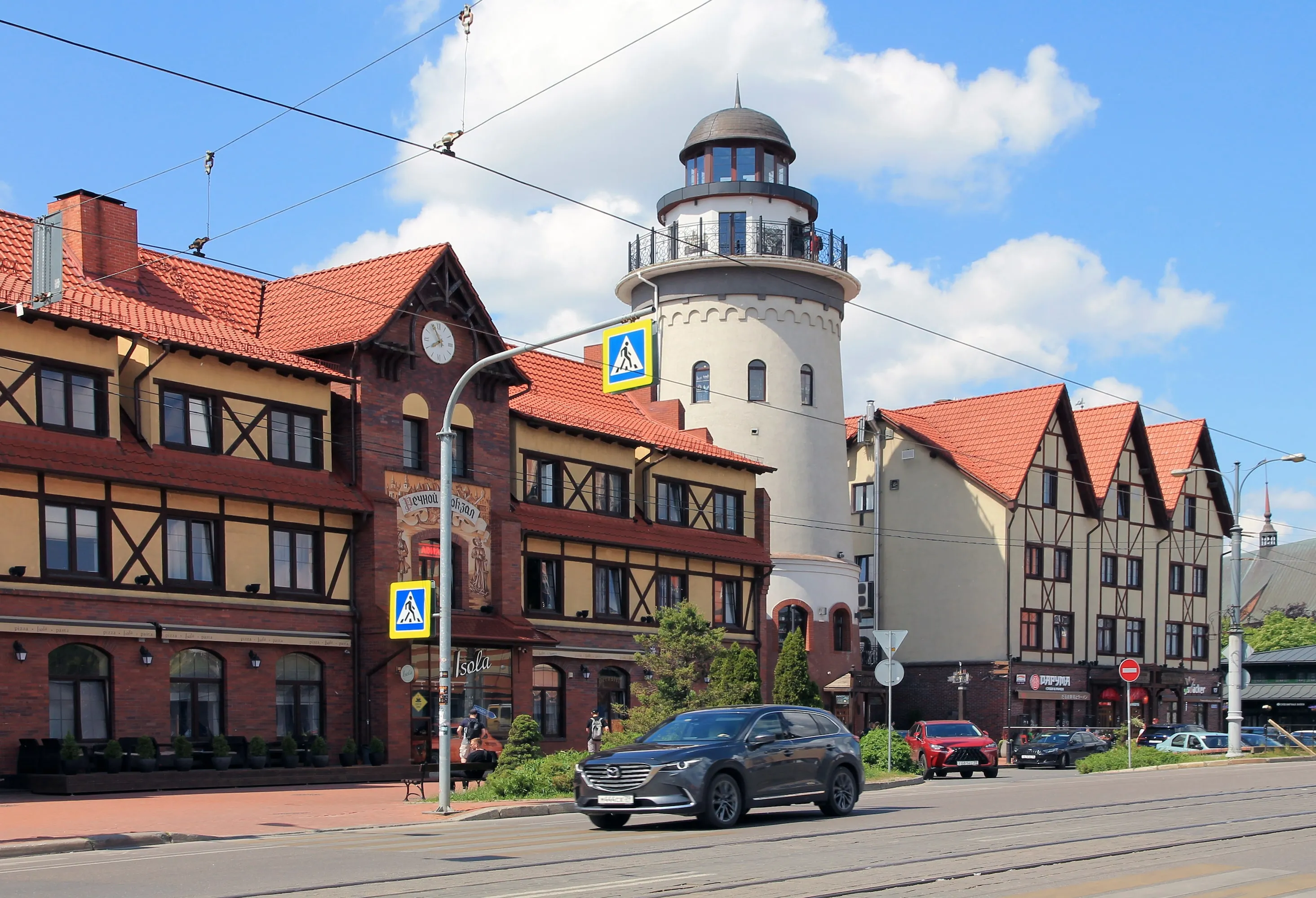 A 360-degree viewing platform with a view of the city in the heart of the Fishermen's Village This is perhaps the best spot for panoramic photos. From a height of 33 meters, you get panoramic views of the Pregolya, the Cathedral, Kant Island, the New Synagogue, the embankment, and the surroundings of Kaliningrad. At the entrance to the tower, guests are greeted by a colorful sailor with a monkey on his shoulder resting on a bench and an innkeeper peeking out from behind the door. Before leaving, don't forget to visit the academic cat at the closed platform and rub the "Bird of Happiness" sculpture's egg for luck.