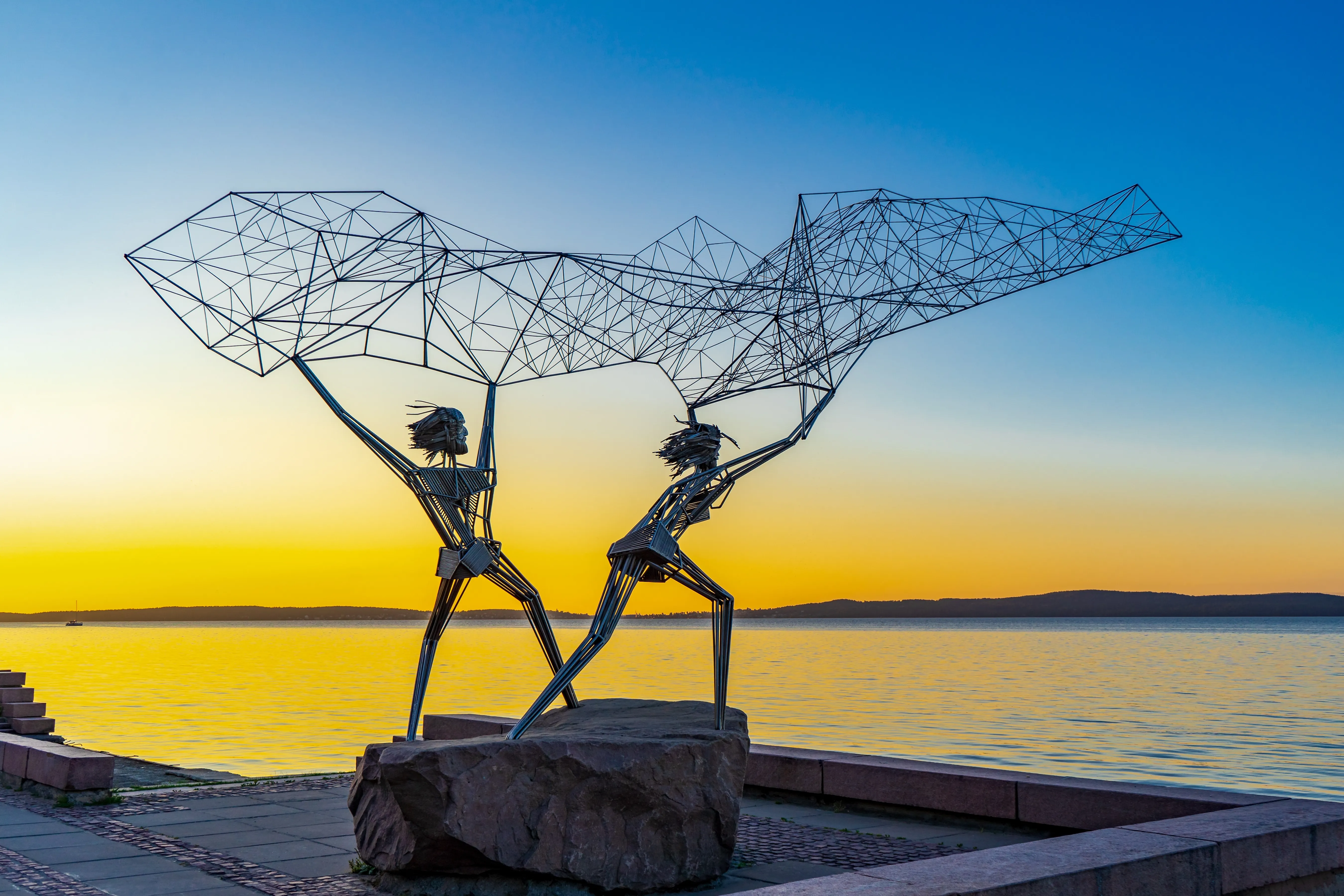 Art objects created by artists from different countries The most famous sculpture is "Fishermen," with fishing nets flying above their heads. Nearby is the "Tree of Wishes." To make a wish, whisper it into the "ear" of the tree trunk. On the other side is the "Tübingen Panel." This art object is made of metal masts with embedded stones.