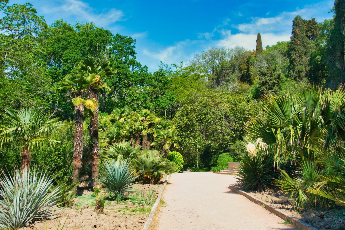 The garden was founded in 1812. Today it houses the largest collection of trees and shrubs - over 2,000 species. Visitors can explore the Upper and Lower Parks, which are combined into the Arboretum. The Upper Park boasts majestic giants - cedars, sequoias, firs and cypresses. In April, tulips bloom here, in May - irises, in June-July - daylilies, roses and cannas, in October-November - chrysanthemums. The Lower Park features a relic olive tree, magnificent specimens of pines and oaks, and subtropical fruit trees. There's a Green Labyrinth - about 1 km of paths winding through laurel thickets and climbing roses. There are also pools with fish and lotuses. There are no bad angles here: the paths are perfectly laid out, bushes are trimmed with virtuosity, and the background always enhances the photo.