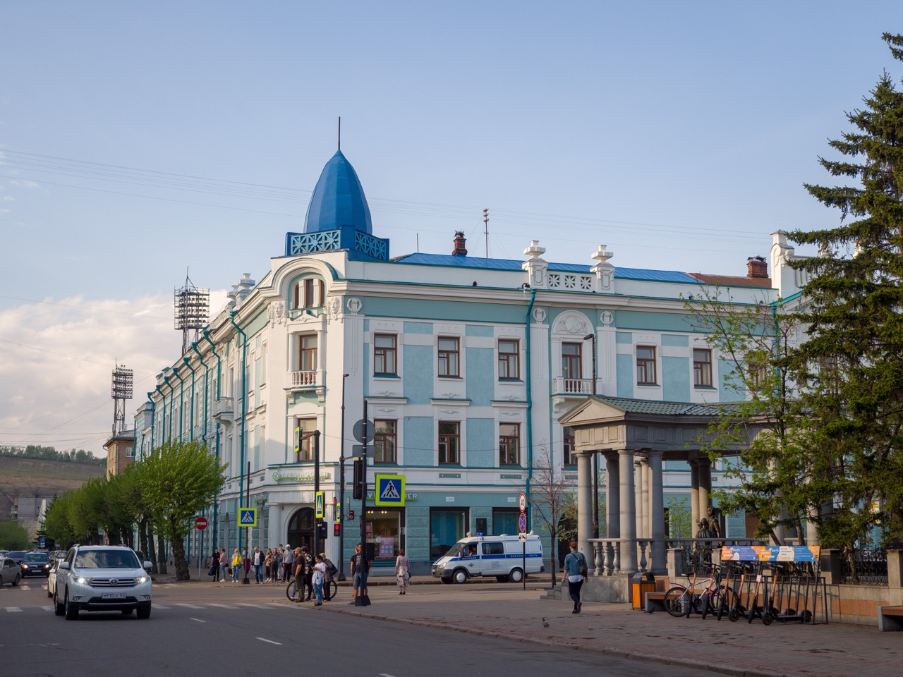 The central street of the city with old merchant buildings, shops, and restaurants. Here, you can see the oldest surviving stone building in Krasnoyarsk — the Pokrovsky Cathedral. This building is a prime example of the Yenisei school of Siberian Baroque. On summer weekends, the street becomes fully pedestrian. Various events for children and adults are held here, musicians perform, movies are shown, and multimedia shows take place.