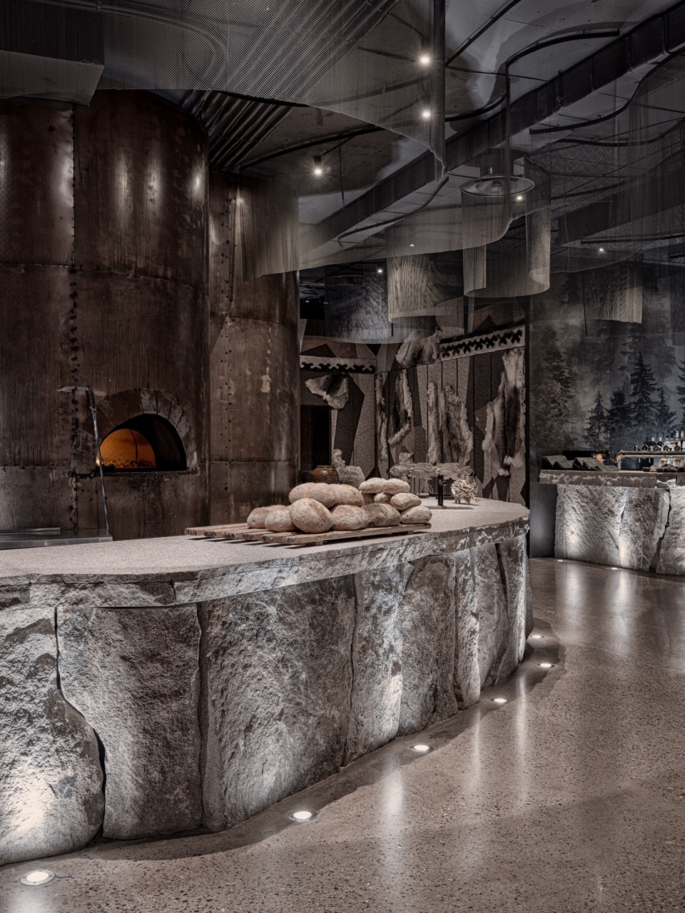 Modern classics of Siberian cuisine. Based on local gastronomic traditions combining Russian cuisine, indigenous peoples' diets and Asian neighbors' traditions. Special mention goes to the "Rituals" tasting set dedicated to ceremonies of Yenisei Siberia's indigenous peoples. The set includes eight dishes symbolizing different rituals, including an edible fly agaric sandwich, bird-shaped pie, ram's cheeks and thymus gland. Note that the set must be ordered at least 24 hours in advance.