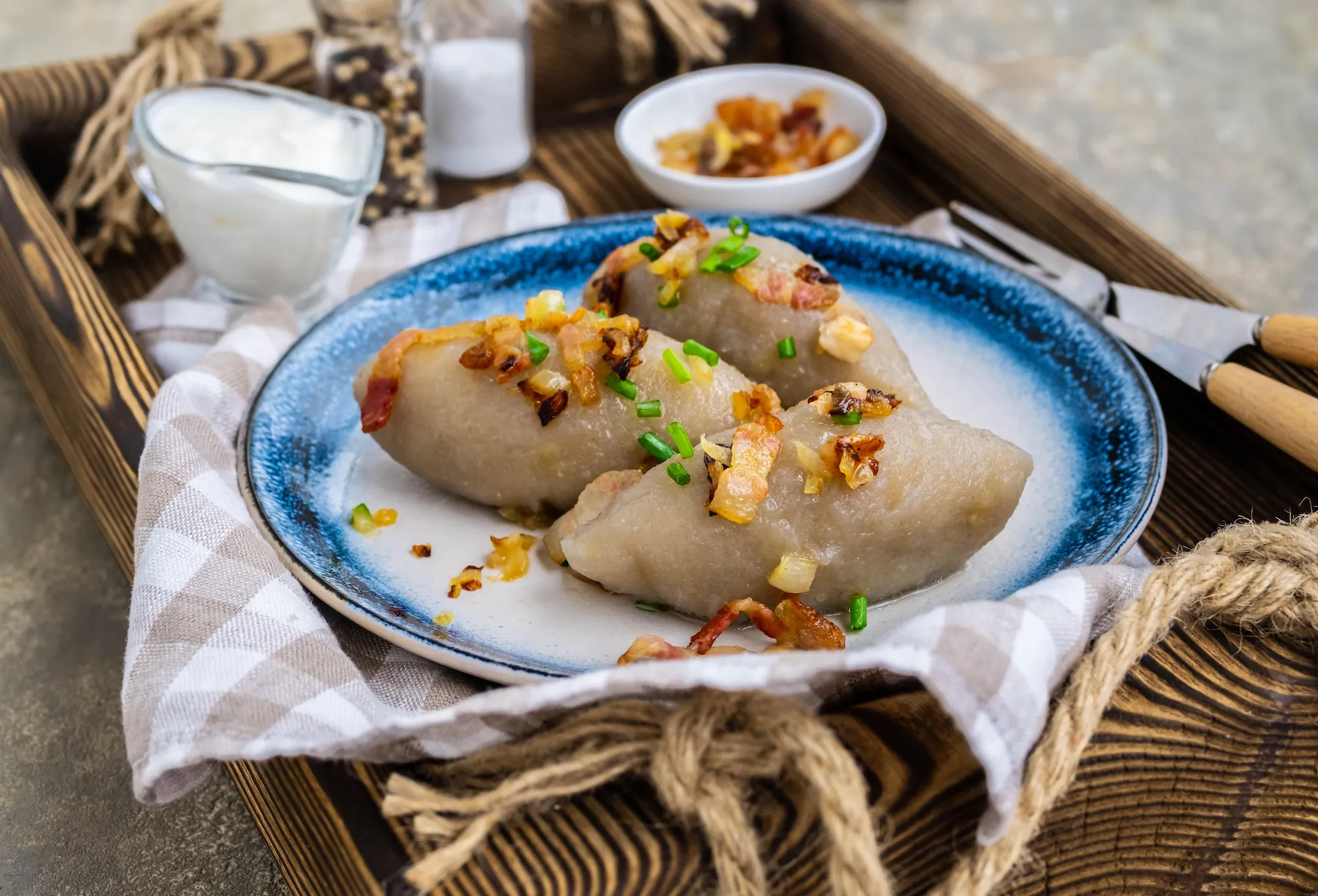 This dish appeared in local cuisine under the influence of Lithuanian cuisine. These are potato dumplings with curd or meat filling.